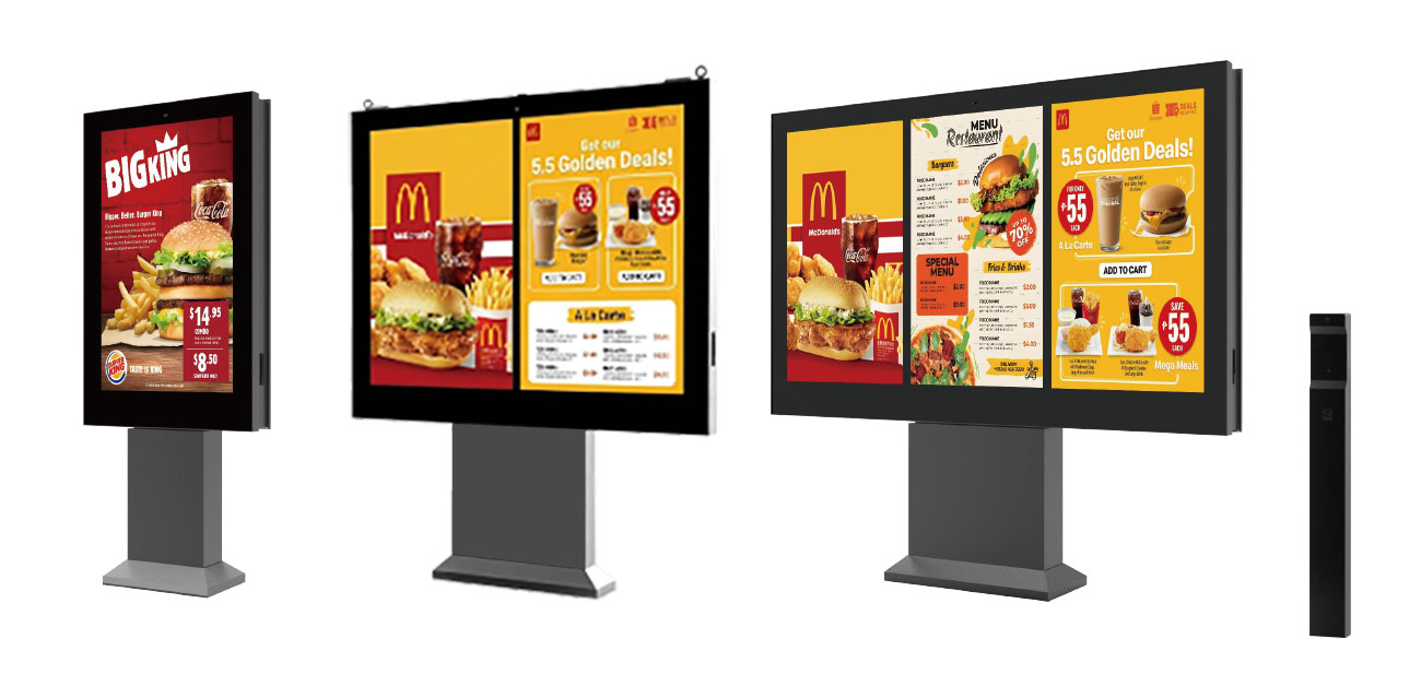Available in single, double, and triple screen configurations, this drive-thru digital menu board can be tailored to different drive-thru locations, optimizing menu visibility and customer ordering flow globally.