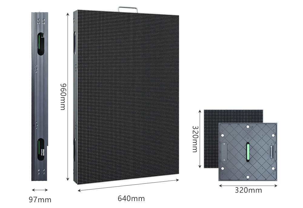 The LED cabinet features a plug-and-play design with built-in guide rails for fast assembly and removal, making installation and maintenance more efficient.
