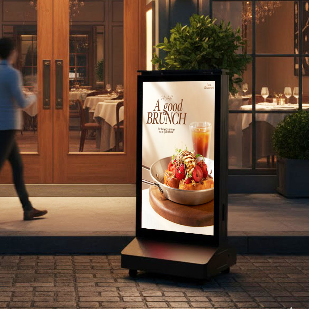 Absolutely. The wireless battery-powered LCD screen is ideal for retail store fronts, shop entrances, and mall walkways. Its high brightness ensures excellent visibility in direct sunlight, helping attract foot traffic and boost on-site promotions.